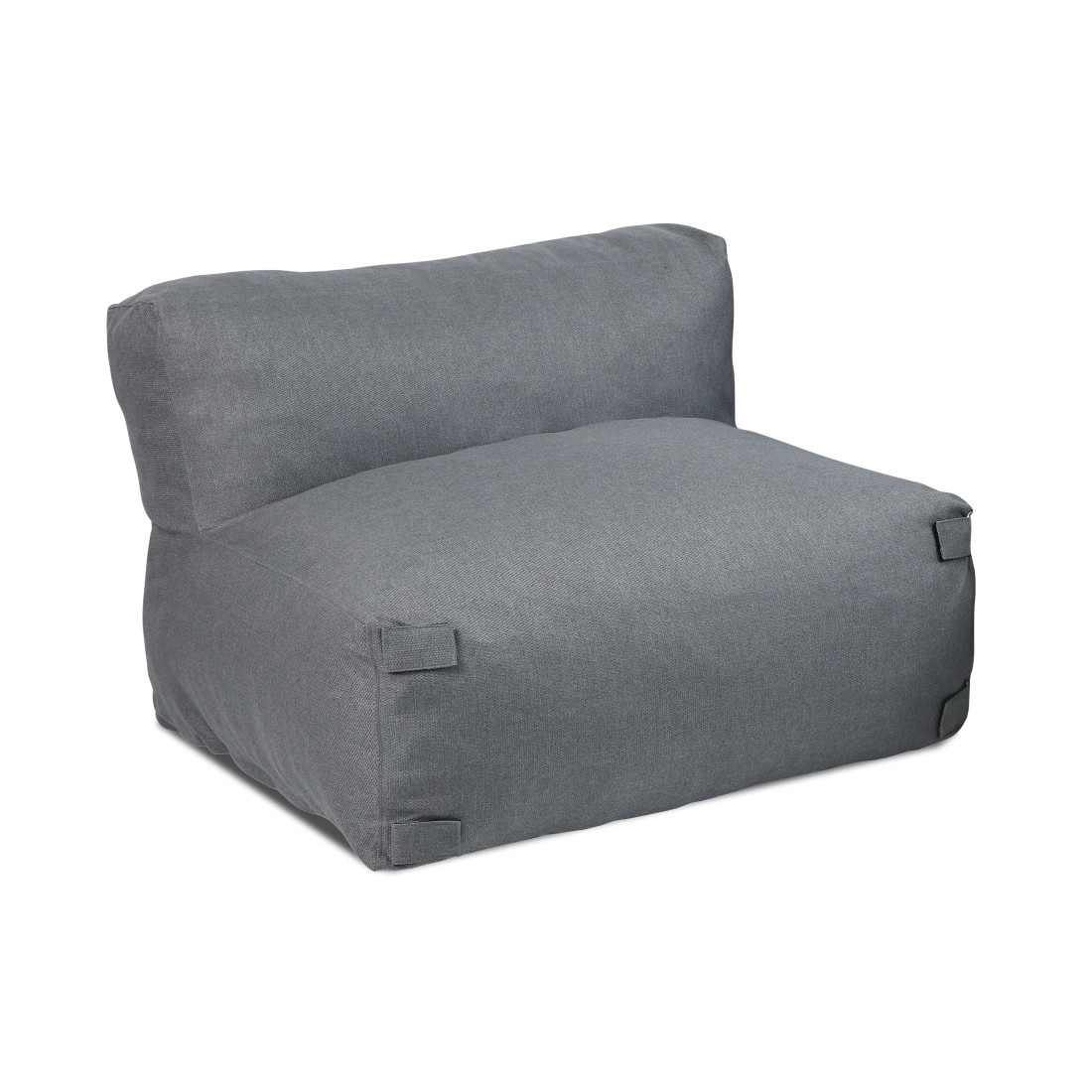 The ALORA Grey centre module is an integral component of the outdoor furniture system, designed for outdoor use. Its design allows for modification of the garden furniture layout, enabling flexible adaptation to the space. It is equipped with cushions filled with elastic sponge, which maintain comfort and shape for a long time. The upholstery fabric, made of water-repellent olefin, limits moisture absorption, making it ideal for outdoor use. In addition, the module is equipped with removable covers, which facilitates cleaning and maintenance. Velcro fasteners ensure the stability of the module, preventing it from sliding apart.