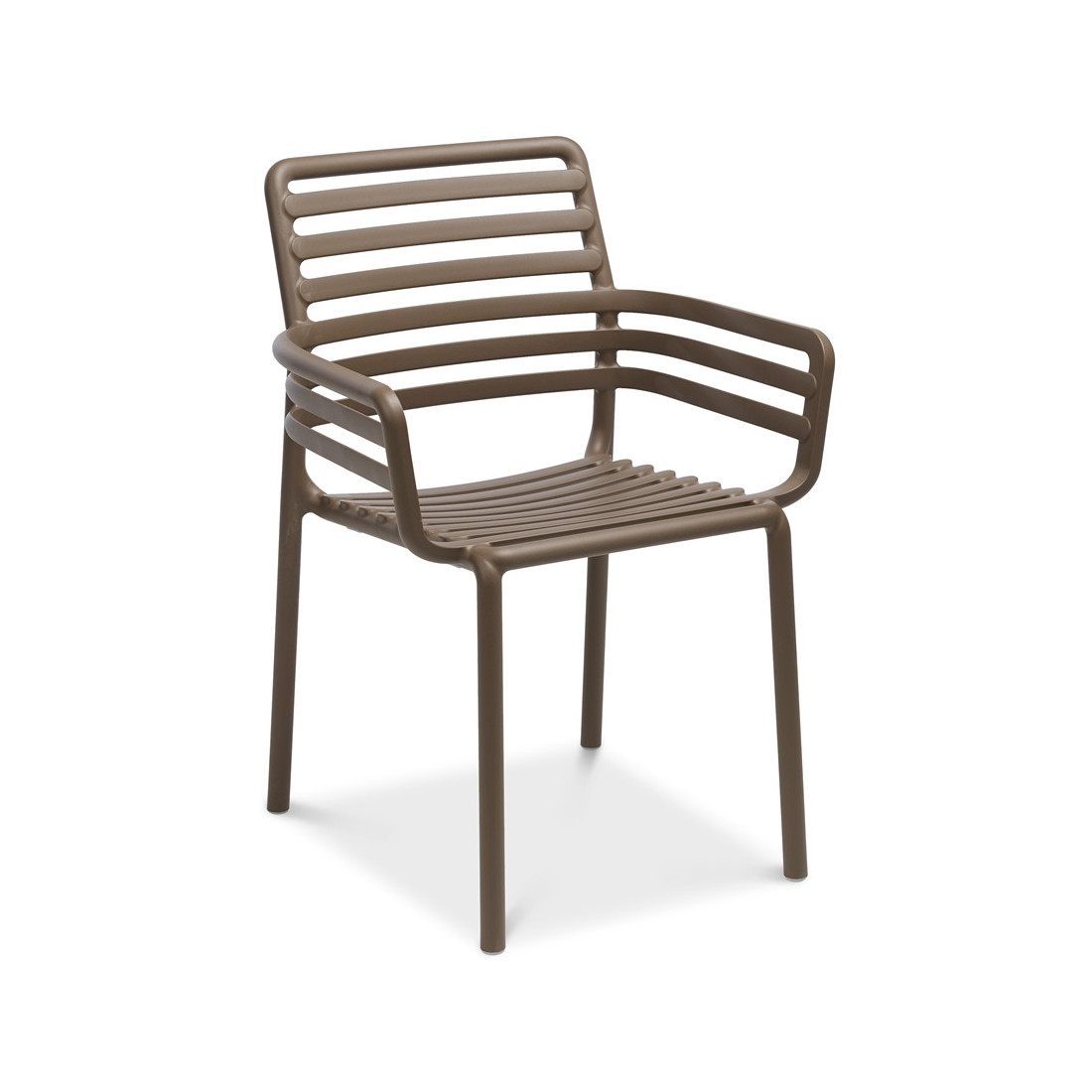 The Doga garden chair is made of high-quality polypropylene reinforced with fibreglass, which ensures its exceptional durability. The monolithic structure of this material, dyed in mass, guarantees resistance to solar radiation and a long-lasting, fresh appearance. In addition, rubberised leg ends increase safety when used on wet surfaces. The practical stackability of the chairs facilitates storage, saving space in the storage area.