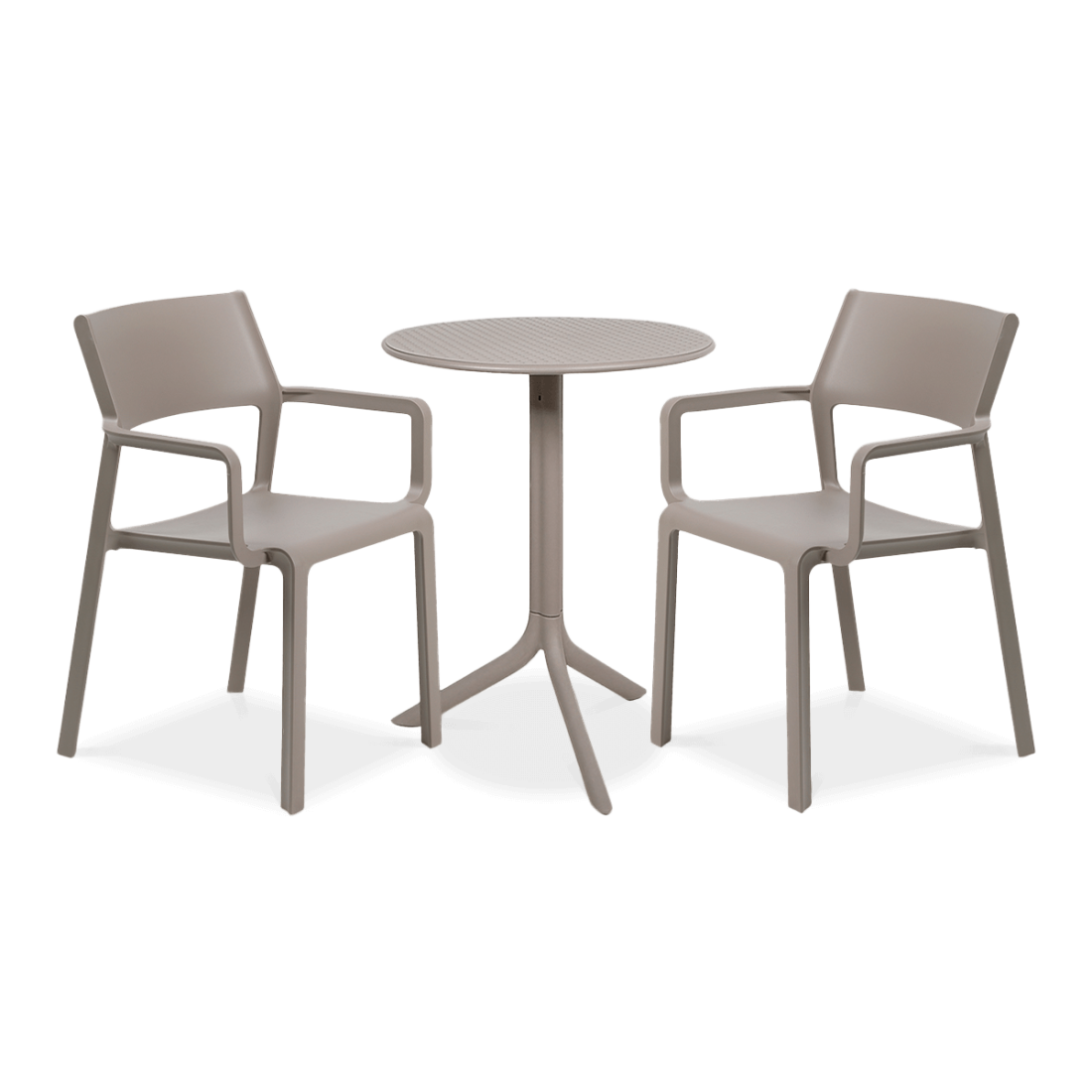 The Nardi TRILL/STEP 2+1 set in Tortora colour is a comprehensive solution for outdoor spaces, combining functionality and modern design. The set includes two stylish chairs and a height-adjustable table, which can be adapted to various needs. The furniture is made of polypropylene with added fibreglass, guaranteeing exceptional durability and resistance to weather conditions.
