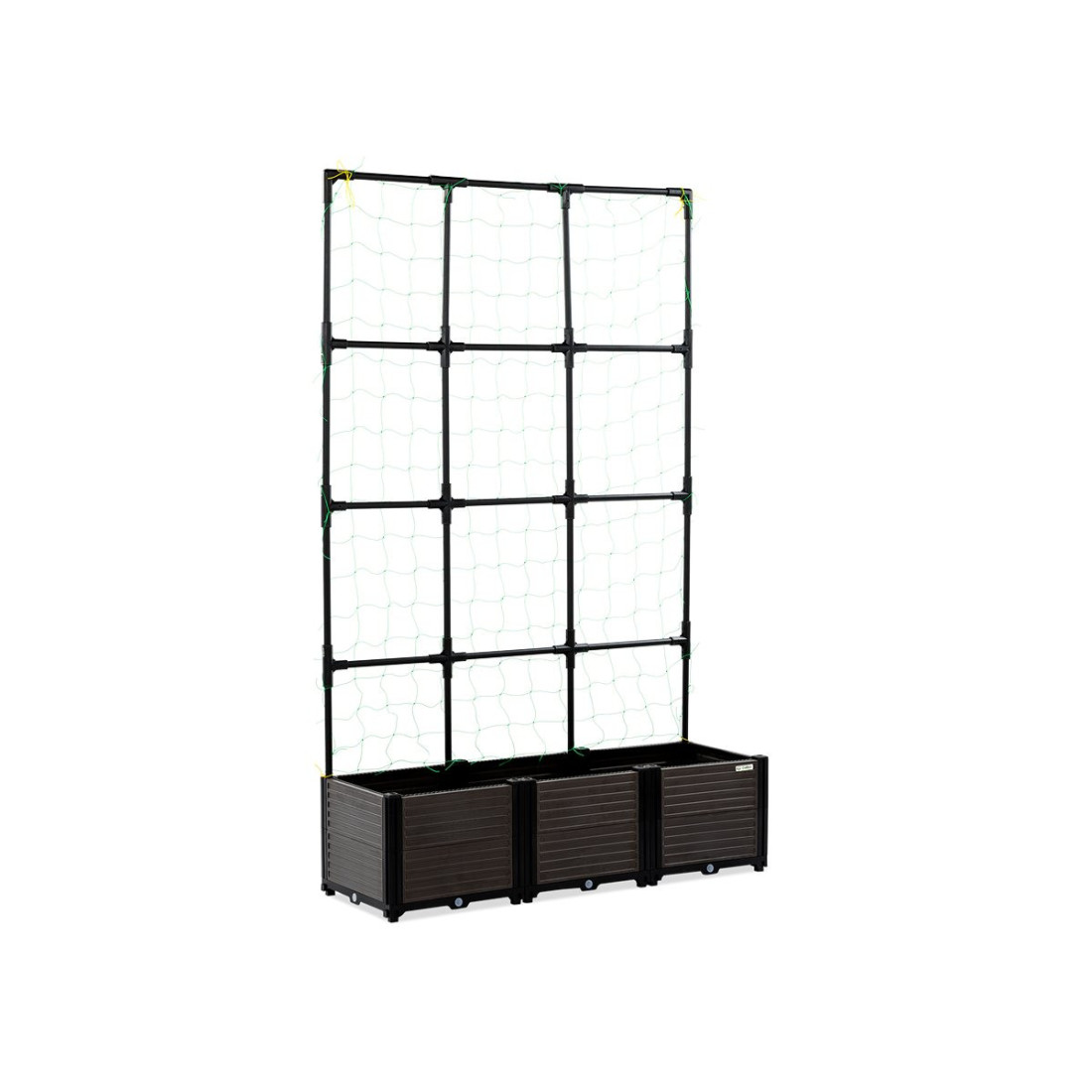 Cultivo GROW FLAT SET L is a functional solution for growing plants, equipped with a spacious box mounted on a sturdy stand. The construction, made of high-quality polypropylene and plastic-coated iron, ensures longevity and resistance to various weather conditions. The product offers a large growing area with a capacity of 141 litres and an effective drainage system that protects plants from overwatering.