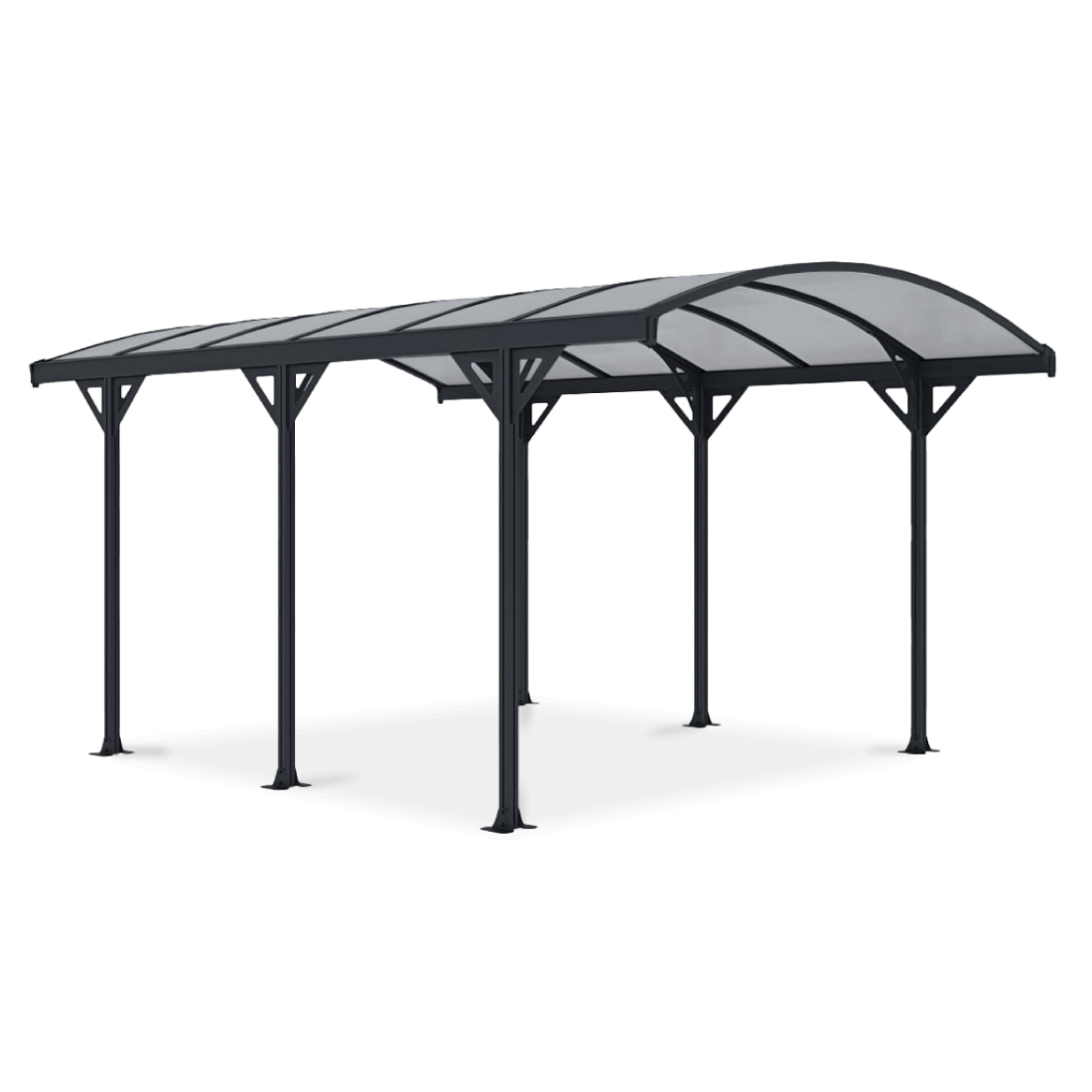 The Nevada carport, measuring 3x4.4 m and available in Cold Grey, is a robust and durable solution made of aluminium and polycarbonate, designed to protect vehicles from adverse weather conditions. The arched roof effectively drains water and snow, providing adequate protection.