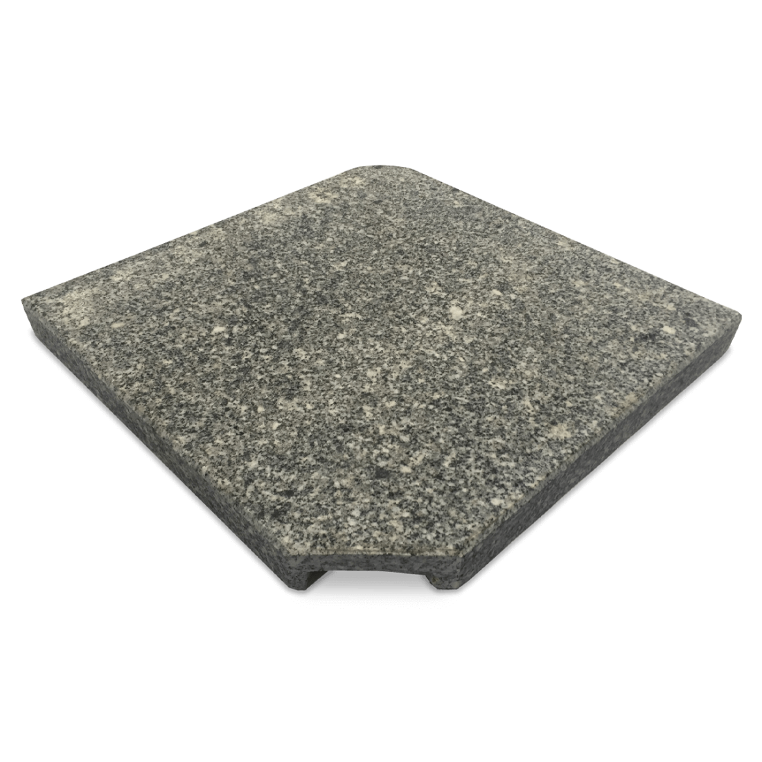 The square base made of granite, measuring 47x47x4 cm and weighing 25 kg, provides the necessary stability for side umbrellas. The material ensures durability and resistance to changing weather conditions. The handle makes installation easy.