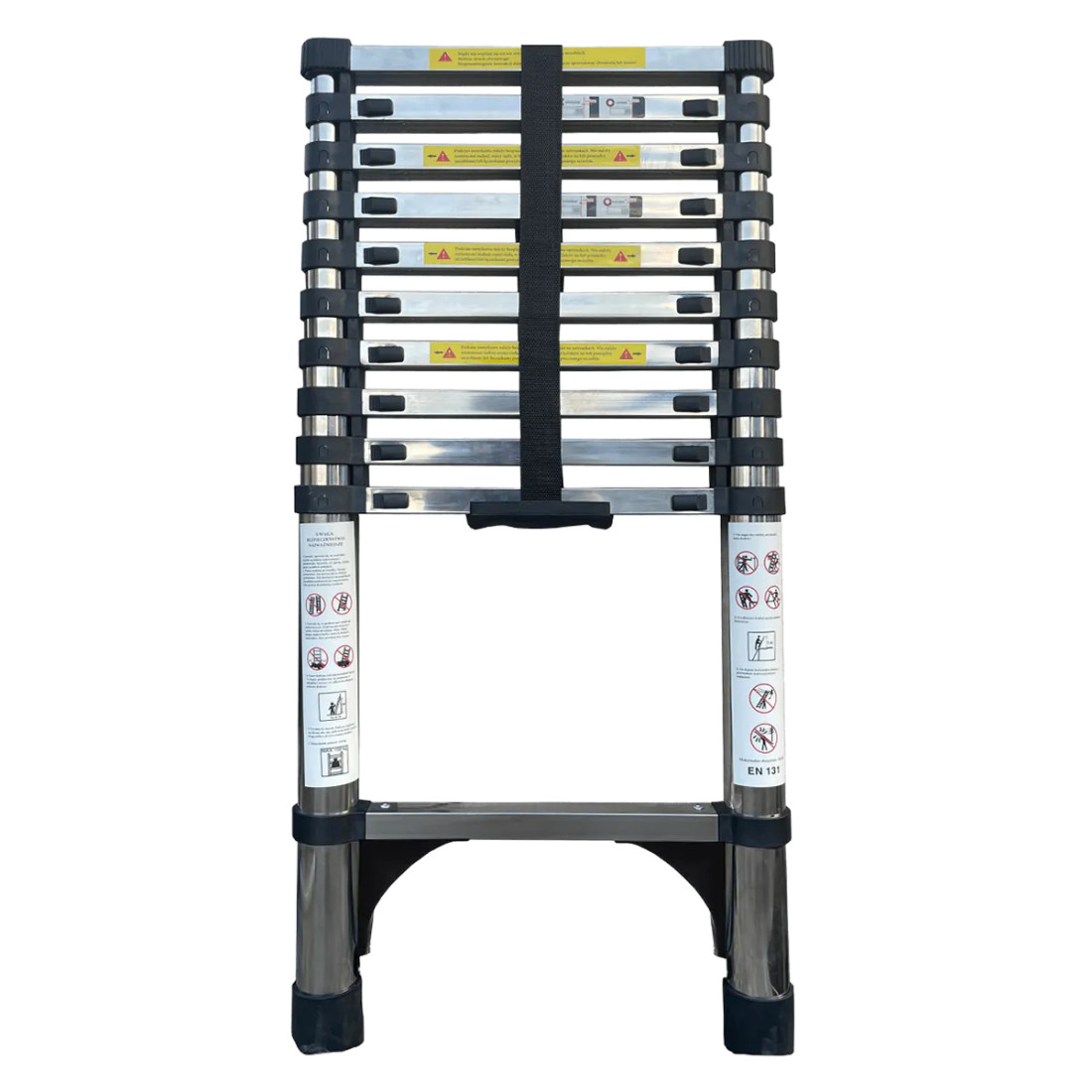 The 3.2-metre telescopic ladder, made of durable aluminium, offers versatile use in professional environments and for household tasks. Equipped with 11 easily adjustable rungs, an automatic locking system and non-slip feet, it ensures safe use. When folded, its length is only 93 cm, which significantly improves mobility and facilitates storage.