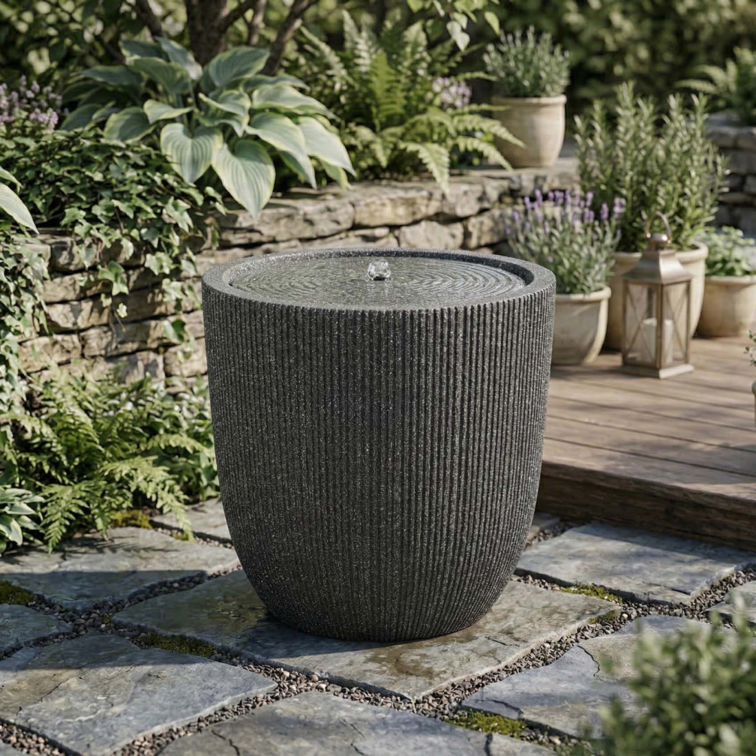 The compact SOLENA LED fountain is a modern solution for spaces with limited room. Equipped with an energy-efficient 6.7 W pump and warm LED lighting, it offers not only visual appeal but also environmental benefits, as 88% of its materials are recycled. Its cylindrical shape and elegant graphite finish allow it to blend seamlessly into a variety of settings.