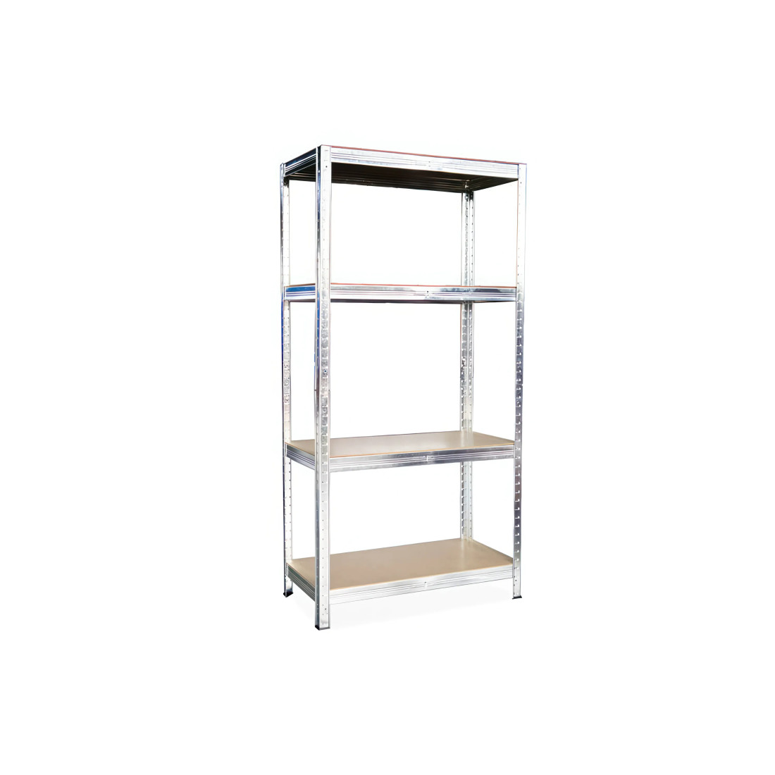 The Hardmaister metal shelving unit, measuring 150x70x30 cm, is a sturdy structure designed for professional use. Made of galvanised steel, it ensures durability and resistance to environmental conditions. Equipped with four 4 mm thick MDF shelves, it offers flexibility in adjusting the space thanks to the possibility of adjusting the height of the shelves. The screw-free assembly system facilitates quick and efficient assembly.