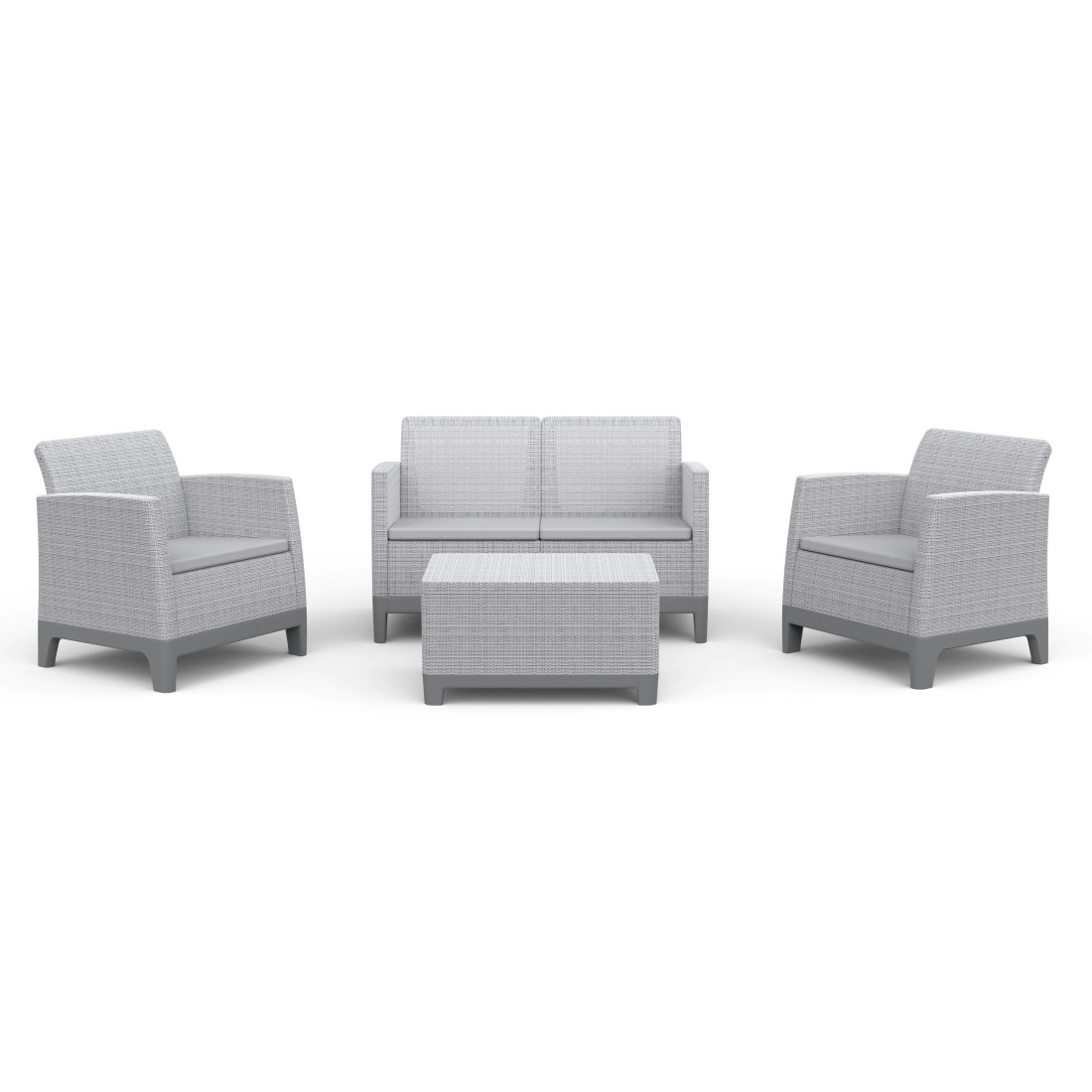 The Scandi Forma furniture set is designed with comfort and functionality in mind. It consists of two armchairs, a two-seater sofa and a coffee table with storage space. The products are made of high-quality polypropylene and offer high resistance to adverse weather conditions. Thanks to the CLICK assembly system, the set can be assembled quickly and without tools. The sophisticated texture inspired by jute and modern colours make this set a unique proposition for outdoor spaces.