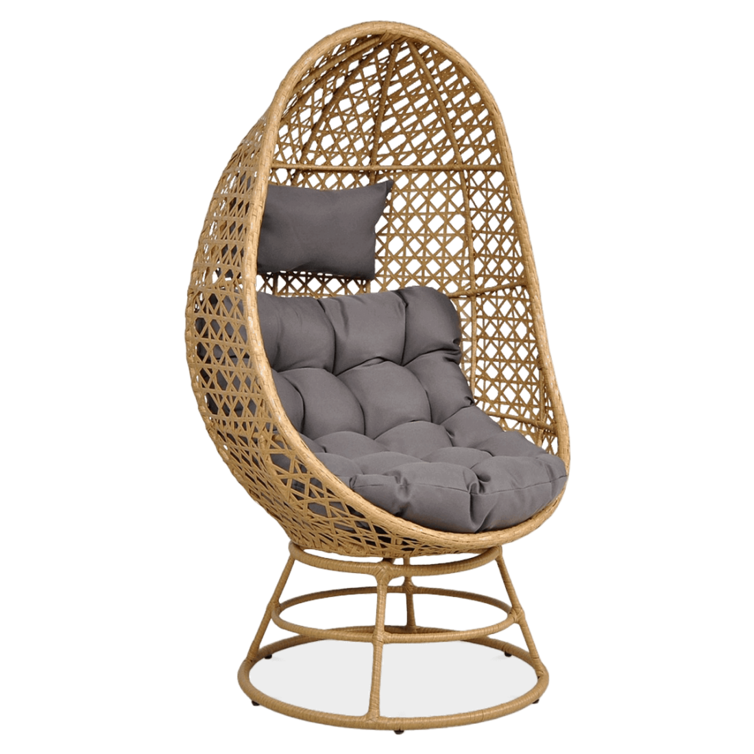 The Holiday Beige swivel chair combines innovative design with comfort. Equipped with a swivel mechanism, it allows for complete freedom of movement. The powder-coated steel and technorattan construction ensures durability in a variety of weather conditions. The ergonomic shape supports healthy posture, and the colour-coordinated cushions add to the comfort.