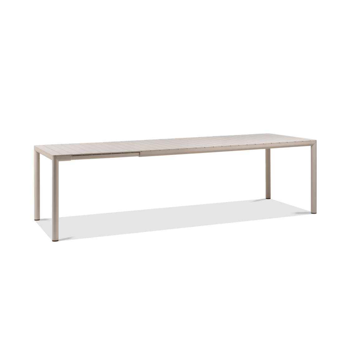 The garden table is made of high-quality polypropylene resin reinforced with fibreglass, offering exceptional resistance to UV rays, moisture and extreme weather conditions. Thanks to its matt finish, the tabletop shows no signs of smudges or scratches, which makes it easy to maintain. The extendable tabletop, up to 275 cm long, provides flexibility in arrangement according to your needs.