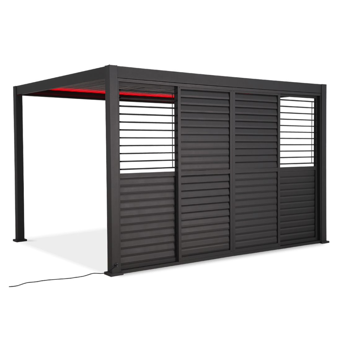 Sliding louvre doors made of high-quality powder-coated aluminium provide protection against UV radiation and changing weather conditions. The sliding system allows for smooth and easy opening, and the adjustable slats allow you to adjust the light intensity to your individual needs. The product is designed for pergolas from the Premium Gutroof series.