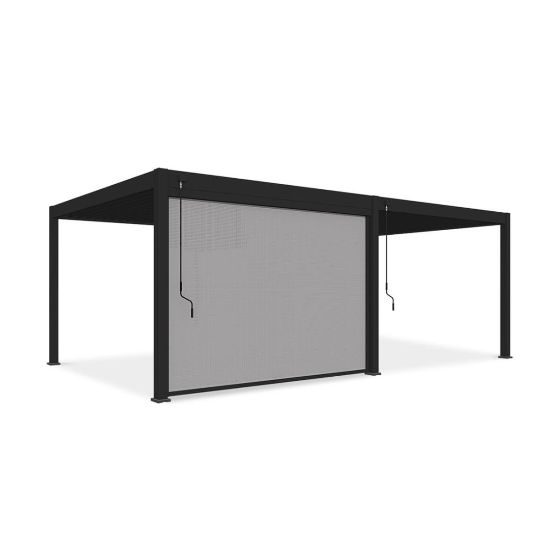 The Gutroof drop-down awning is designed as a practical solution to protect against sun and wind and ensure privacy in outdoor spaces. Compatibility with pergolas from the ELEGANCE, DELUXE and FUSION series allows for consistent integration into the existing infrastructure. The roller blind is made of textilene fabric, which is resistant to UV rays and moisture, ensuring durability and reliability. The guide system allows for smooth movement of the roller blind, which is particularly important in changing weather conditions.