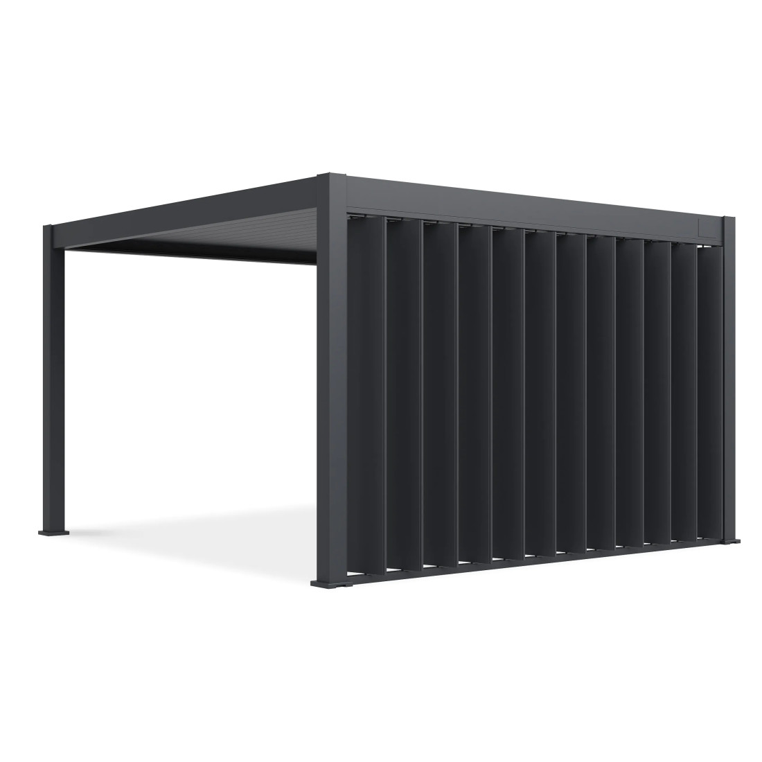 The adjustable panel wall designed for Gutroof pergolas is an excellent tool for controlling the amount of light in outdoor spaces. The aluminium construction allows the slats to be adjusted up to 135 degrees, enabling precise shading adjustment. Thanks to advanced technology, the panel provides effective protection from the sun and ensures privacy in the space.