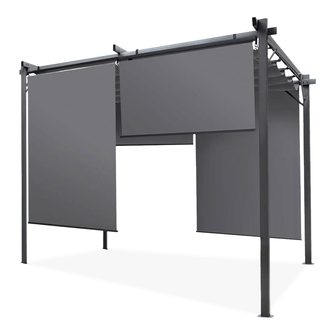 Pergola tarasowa SPRINT Plus 3x3 cieszy się solidnością dzięki konstrukcji z malowanej proszkowo stali, która gwarantuje długoterminową odporność na korozję. Wyposażona jest w wodoodporny dach z poliestrowej tkaniny powlekanej PVC. Dodatkowo zawiera cztery rolety boczne zwiększające prywatność użytkowników.