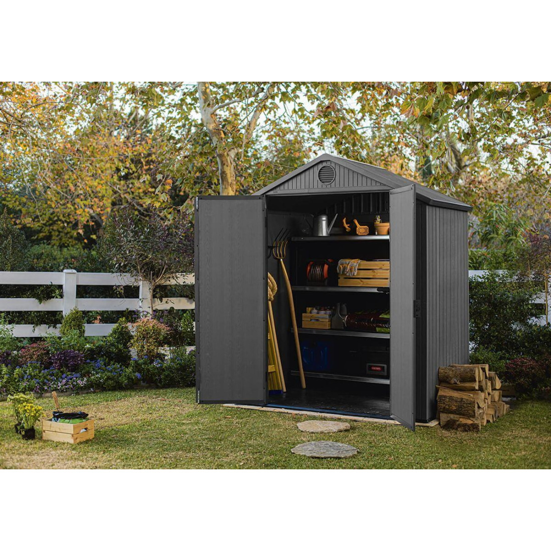 Domek ogrodowy Darwin 6x4 został stworzony z kompozytowych paneli Evotech+, zapewniając wytrzymałość na różnorodne warunki atmosferyczne bez konieczności konserwacji. Wzmocniony dach o odporności do 75 kg/m2 oraz zintegrowany system wentylacyjny podnoszą funkcjonalność i bezpieczeństwo użytkowania. Grafitowa kolorystyka oraz elementy ułatwiające montaż sprawiają, że jest to doskonały wybór do wieloletniego użytku w środowisku ogrodowym.
