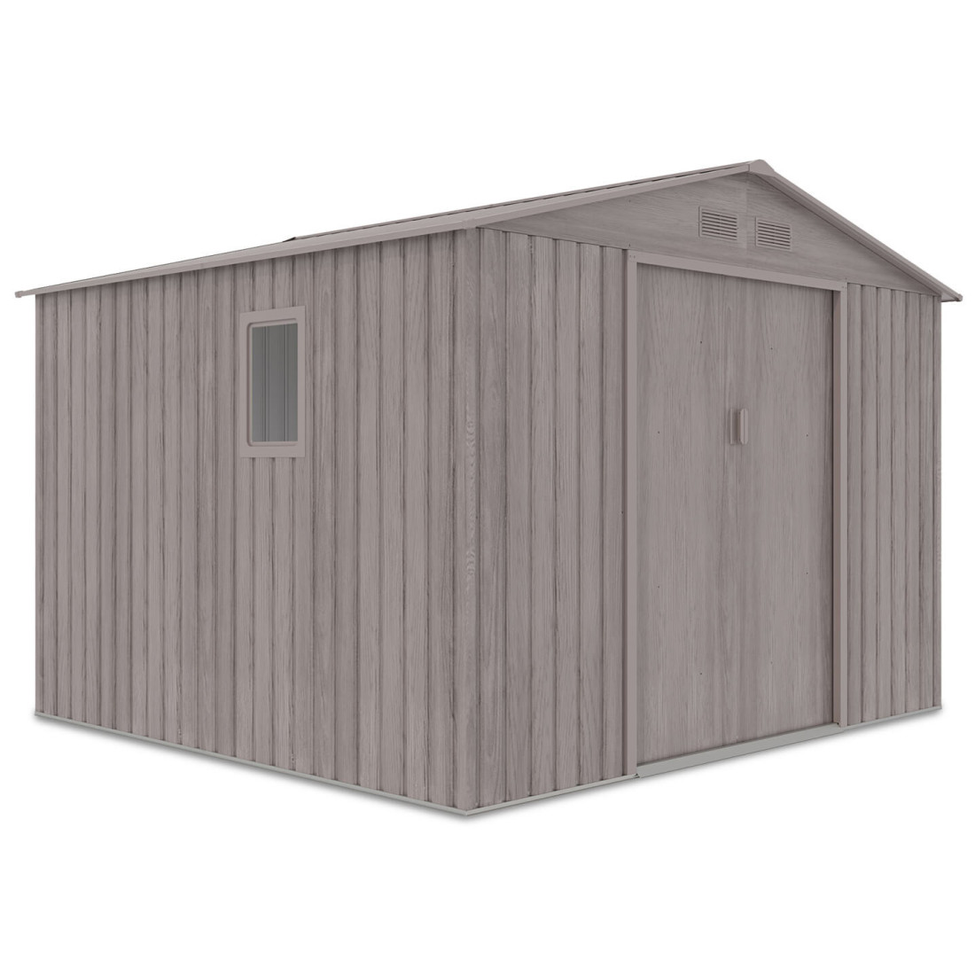 HUDSON 277x255 cm to solidny domek narzędziowy wykonany z ocynkowanej stali o powierzchni 6,5 m². Jego konstrukcja charakteryzuje się dużą odpornością na korozję i uszkodzenia atmosferyczne. System przesuwnych drzwi oraz otwory wentylacyjne zapewniają łatwość użytkowania i odpowiednią cyrkulację powietrza. Dzięki możliwości zamontowania kłódki, przechowywane przedmioty są dodatkowo zabezpieczone.