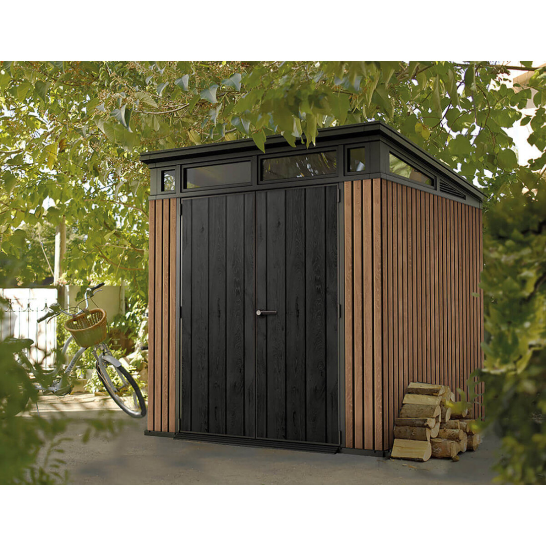 Domki ogrodowe z kolekcji Signature to nowoczesne rozwiązania dla wymagających użytkowników. Model Penthouse 7x7 charakteryzuje się zastosowaniem technologii DecoCoat na bazie polipropylenu, co gwarantuje odporność na warunki atmosferyczne i imituje naturalne drewno. Domek oferuje przestronne wnętrze z solidną stalową konstrukcją i specjalnie zaprojektowanym dachem odpornym na obciążenie śniegiem do 200 kg/m². Wygodne przeszklenia oraz system wentylacyjny zapewniają odpowiednią cyrkulację powietrza i dostęp naturalnego światła.