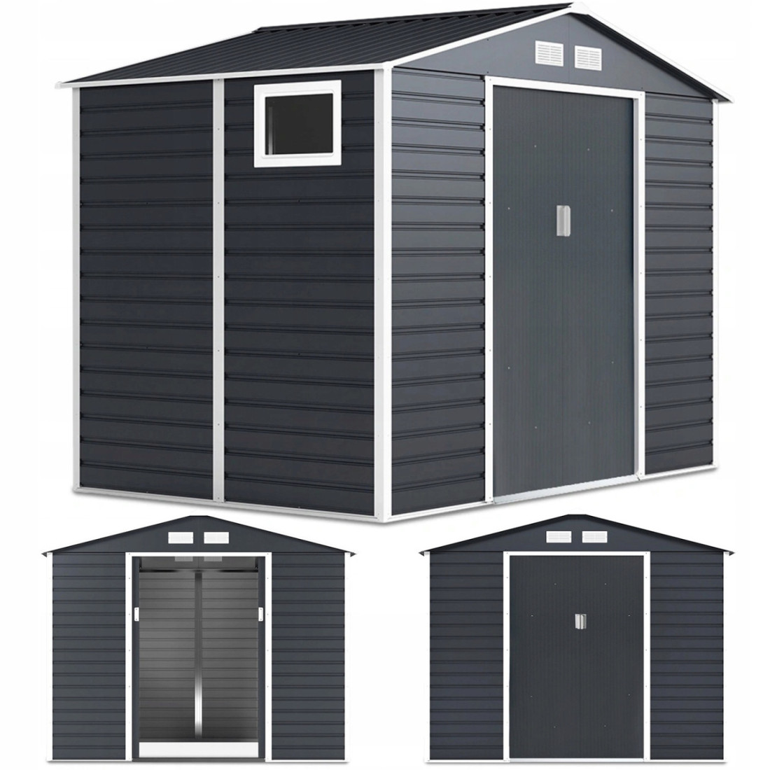 Domek narzędziowy MONTREAL to konstrukcja wykonana z ocynkowanej stali, wyposażona w panele o grubości 0,25 mm. Jego dwuspadowy dach zapewnia swobodny odpływ wody i śniegu. Model charakteryzuje się dużymi przesuwnymi drzwiami, czterema otworami wentylacyjnymi i oknem doświetlającym wnętrze. Do wyboru są różne opcje montażu okna, co pozwala dostosować domek do indywidualnych potrzeb.