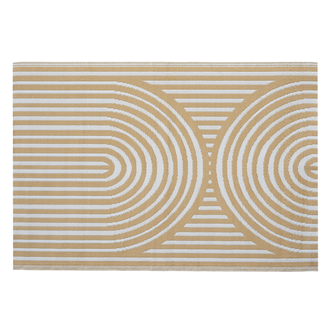 Ten dywan zewnętrzny, wykonany z odpornych na warunki atmosferyczne włókien polipropylenowych, nadaje się do wszechstronnego zastosowania na tarasach, balkonach czy patio. Charakteryzuje się wodoodporną konstrukcją i stabilnością kolorów, co czyni go odpornym na blaknięcie i łatwym w utrzymaniu czystości.