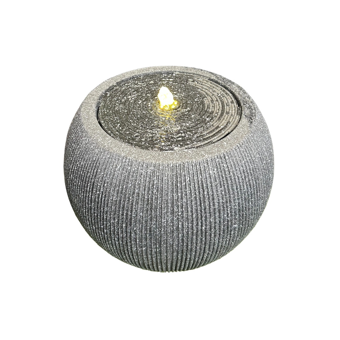 Fontanna ogrodowa AQUALIGHT LED o wymiarach 37x30 cm to innowacyjne rozwiązanie zaprojektowane z myślą o nowoczesnym designie. Wykonana z materiałów pochodzących z recyklingu (88% recyklingowany PP), ozdobiona graficznym odcieniem i wyposażona w oświetlenie LED. Charakteryzuje się płynnym, niemal bezdźwięcznym obiegiem wody z możliwością regulacji intensywności strumienia. Fontanna posiada wygodny kabel zasilający o długości 1,83 m oraz klasę szczelności IP44, a oświetlenie IPX4.