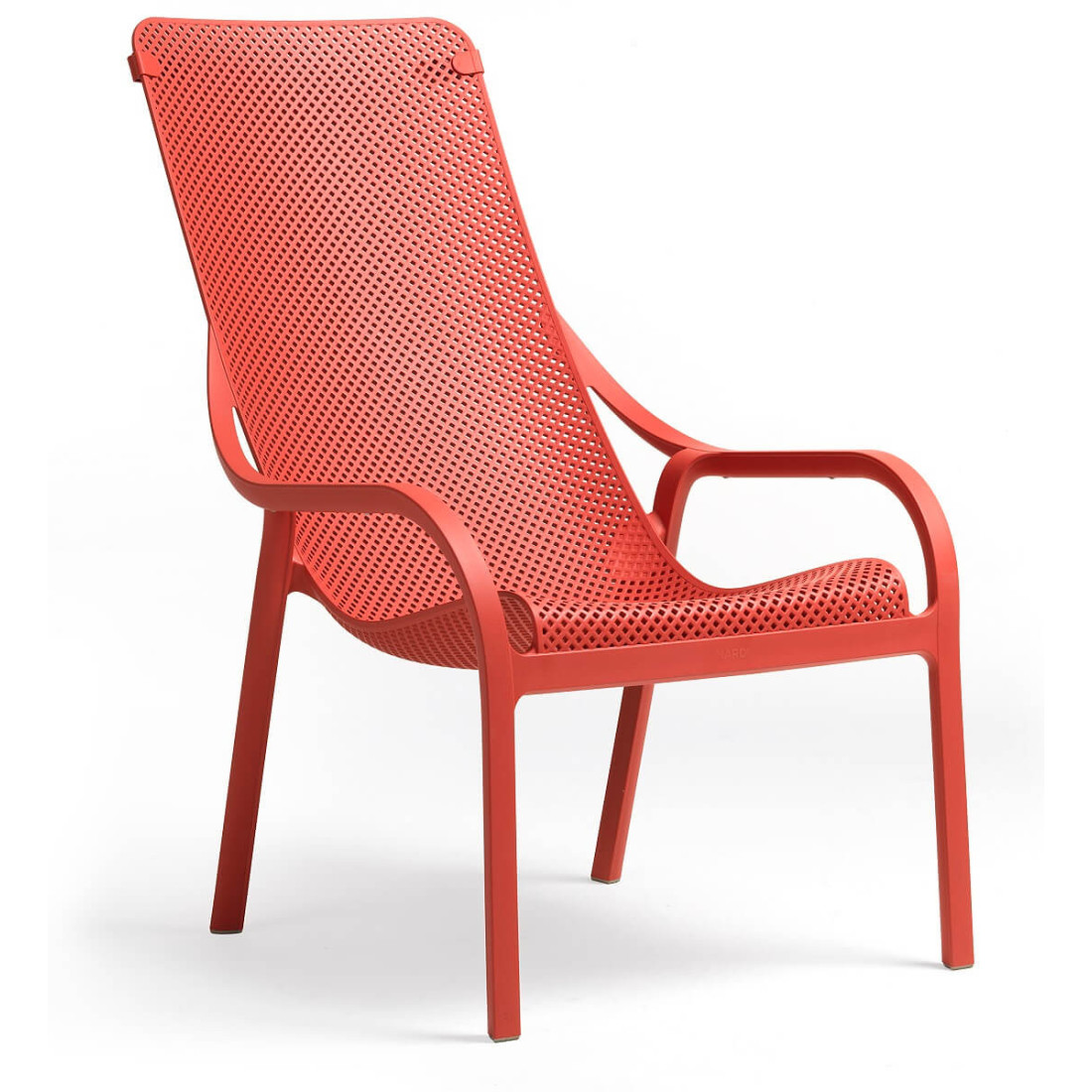 Krzesło NARDI Net Lounge Corallo wykonane jest z trwałej, jednolicie barwionej żywicy polipropylenowej, której cechy obejmują odporność na warunki atmosferyczne i działanie promieniowania UV. Posiada matowe wykończenie, co dodaje mu elegancji. Jego konstrukcja umożliwia sztaplowanie, co jest istotne przy zarządzaniu przestrzenią.