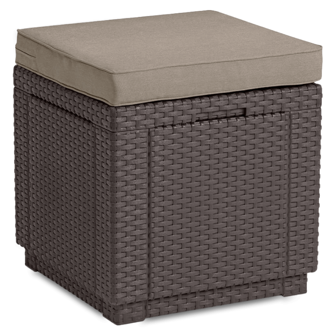 Pufa ze schowkiem CUBE Brown to praktyczne rozwiązanie, które łączy funkcjonalność i estetykę. Wykonana z trwałego tworzywa sztucznego, które imituje rattan, oferuje dodatkowe miejsce do siedzenia oraz przechowywania. Jej kompaktowe wymiary (42x42x39 cm) sprawiają, że idealnie pasuje do mniejszych przestrzeni, takich jak tarasy, balkony czy ogrody. Odporność na warunki atmosferyczne i łatwość w utrzymaniu czystości to dodatkowe zalety tego produktu.