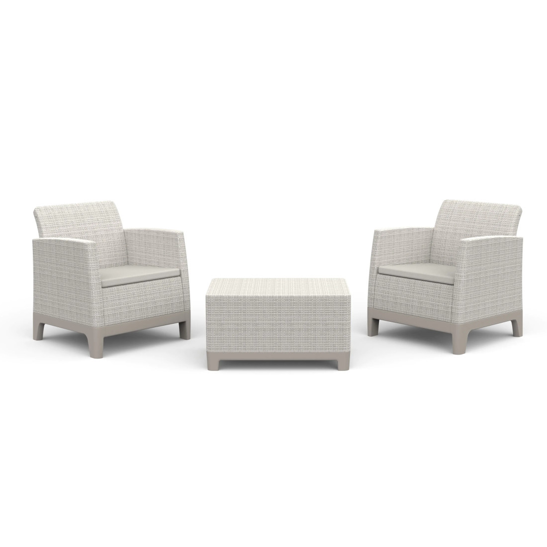 Zestaw mebli balkonowych Scandi Forma Balcony składa się z dwóch foteli oraz stolika, który pełni także funkcję przechowywania. Wykonane z polipropylenu o dwukolorowym wykończeniu, zapewniają trwałość, stabilność oraz odporność na warunki atmosferyczne. Montaż jest szybki i łatwy dzięki systemowi CLICK, co czyni ten produkt praktycznym rozwiązaniem dla wszechstronnych przestrzeni wypoczynkowych.