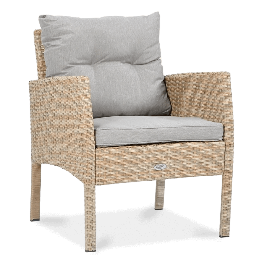 Fotel technorattanowy CORTINA Beige to solidna konstrukcja wykonana z technorattanu, zamocowana na stalowym stelażu odpornym na korozję. Dzięki użyciu materiałów odpornych na promieniowanie UV, wilgoć i zagrzybienie, fotel gwarantuje trwałość i komfort użytkowania przez cały rok.