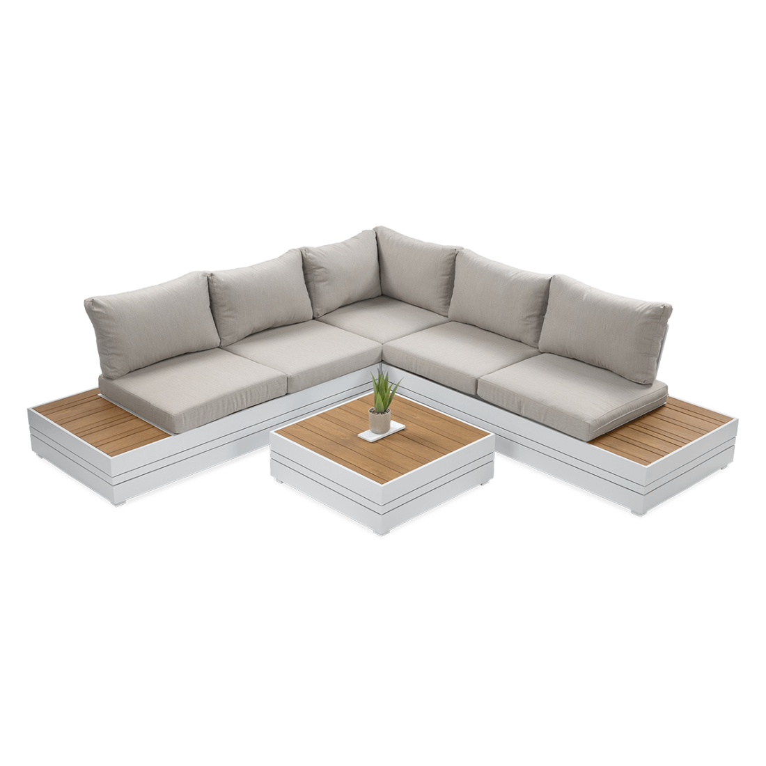 Naroznik ogrodowy MARVEL White to modulowy zestaw mebli z technorattanu, zaprojektowany z mysla o intensywnej eksploatacji w przestrzeniach zewnetrznych. Konstrukcja na metalowym stelazu odporna jest na zmienne warunki atmosferyczne, w tym wilgoc i promieniowanie UV. Komplet sklada sie z elementow umozliwiajacych elastyczna aranzacje - siedziska narozne, srodkowe, stolik oraz wygodne poduszki. Latwe w czyszczeniu powierzchnie pozwalaja na bezproblemowe utrzymanie wysokiego standardu wizualnego. Meble zachowuja estetyke przez wiele sezonow uzytkowania.