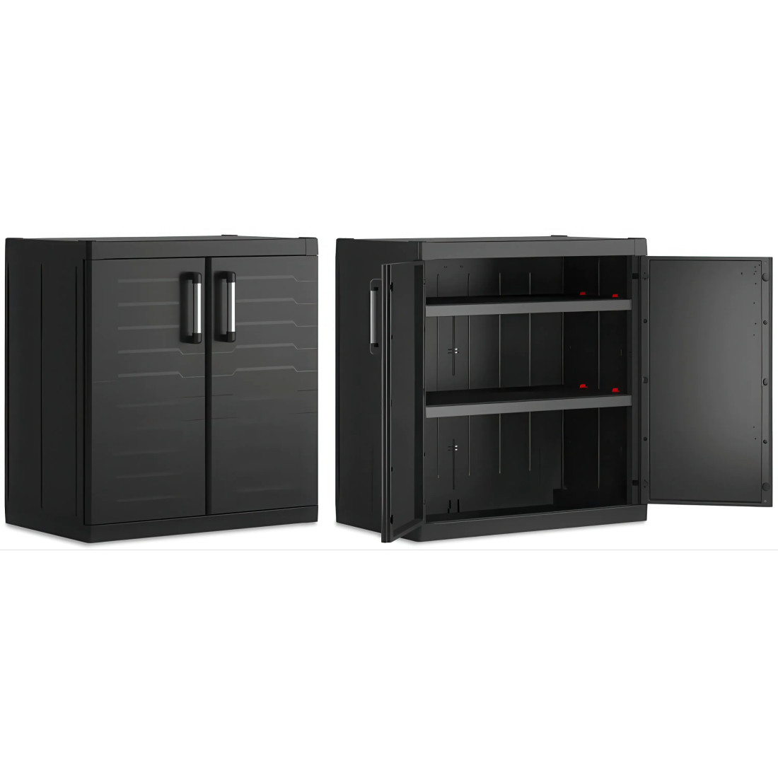 Szafka Detroit XL LOW CABINET to praktyczne rozwiązanie do optymalizacji przestrzeni w obiektach przemysłowych oraz handlowych. Produkt zbudowany z wytrzymałego polipropylenu wykazuje wysoką odporność na uszkodzenia mechaniczne. Dwie regulowane półki z możliwością obciążenia do 25 kg każda, pozwalają na elastyczne dopasowanie przestrzeni do przechowywania różnorodnych narzędzi i materiałów eksploatacyjnych.