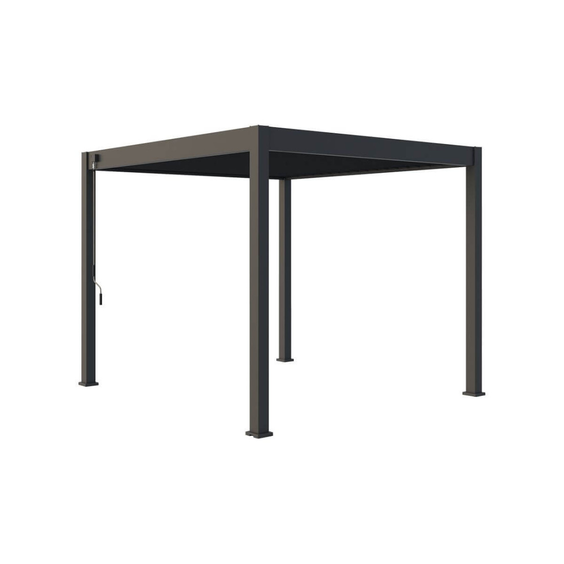 Pergola tarasowa ELEGANCE 3x3 Anthracite to nowoczesne rozwiązanie stworzone z myślą o przestrzeniach zewnętrznych. Wyposażona w mechanizm regulowanej ilości światła za pomocą aluminiowych lameli, oferuje możliwość pełnej kontroli nad warunkami cienia i wentylacji. Konstrukcja z aluminium malowanego proszkowo gwarantuje długotrwałą odporność na korozję i promieniowanie UV. Wbudowany system odprowadzania wody zwiększa funkcjonalność nawet podczas deszczowych dni.