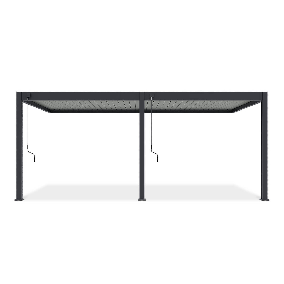 Pergola przyścienna Gutroof ELEGANCE 3x6 to solidna konstrukcja wykonana z wysokiej jakości aluminium, dostępna w kolorystyce antracytowej z jasnoszarymi lamelami. Konstrukcja jest odporna na wiatr do 100 km/h oraz obciążenia śniegiem do 50 kg/m². Dzięki regulowanym lamelom dachowym, można precyzyjnie kontrolować nasłonecznienie i wentylację przestrzeni pod pergolą.