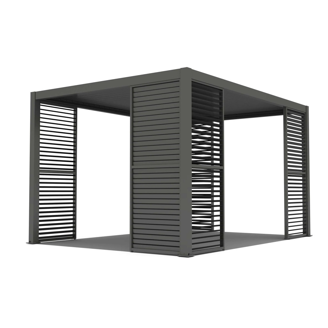 Panel żaluzjowy jest wykonany z trwałego aluminium, oferując wysoką odporność na czynniki pogodowe. Mechanizm obrotowych żaluzji pozwala na płynne dostosowywanie kąta nasłonecznienia aż do 320 stopni. Powłoka w kolorze Anthracite dodaje estetyki każdemu projektowi architektury ogrodowej. Produkt jest wodoodporny, zapewniając ochronę przed wilgocią przy zamkniętych żaluzjach.