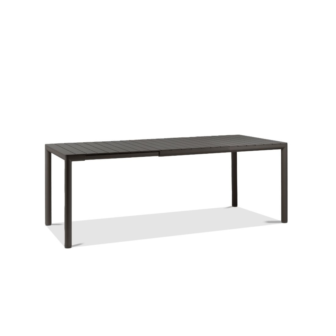 Stół Tevere 147 Antracite to nowoczesne rozwiązanie w sektorze mebli outdoorowych, łączące funkcjonalność z minimalistycznym designem. Wykonany z trwałej żywicy polipropylenowej wzmocnionej włóknem szklanym, zapewnia odporność na różne warunki atmosferyczne i promieniowanie UV. Rozkładany blat umożliwia dostosowanie rozmiaru stołu do aktualnych potrzeb, a regulowane nóżki gwarantują stabilność na nierównych powierzchniach. Bezpieczne, zaokrąglone krawędzie oraz matowe wykończenie podkreślają profesjonalną estetykę produktu.