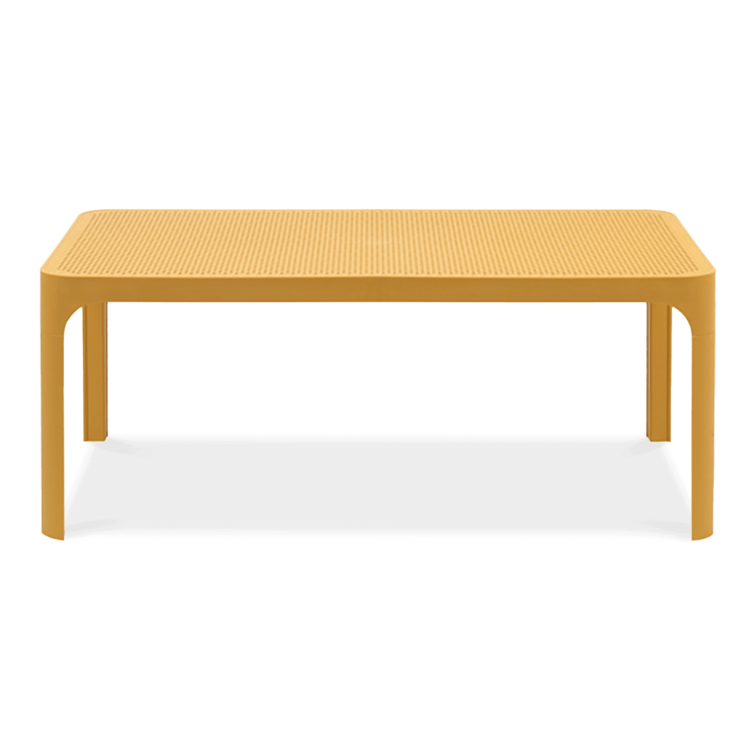 Stolik Nardi NET 100 Senape wykonany jest w całości z polipropylenowej żywicy wzmocnionej włóknami szklanymi. Ten stół ogrodowy charakteryzuje się wyjątkową odpornością na czynniki atmosferyczne, w tym promienie UV, dzięki czemu idealnie sprawdzi się w różnych warunkach klimatycznych. Posiada antypoślizgowe stopki, które zapewniają stabilność.