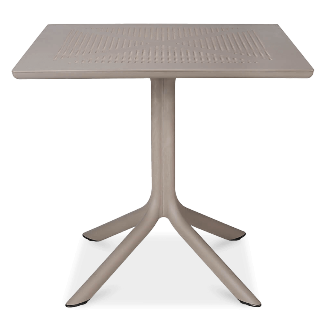 Stół Nardi ClipX 80 Tortora to model wykonany z polipropylenu wzmocnionego włóknem szklanym, przystosowany do intensywnego użytkowania na zewnątrz. Okrągły blat odporny na działanie czynników atmosferycznych posiada otwory, które usprawniają odprowadzanie wody. Stabilność konstrukcji zapewniają nogi wyposażone w system regulowania wysokości, ułatwiający ustawienie na różnych podłożach. Powierzchnia stołu nie wymaga konserwacji i jest łatwa do czyszczenia, co przekłada się na niskie koszty eksploatacji.
