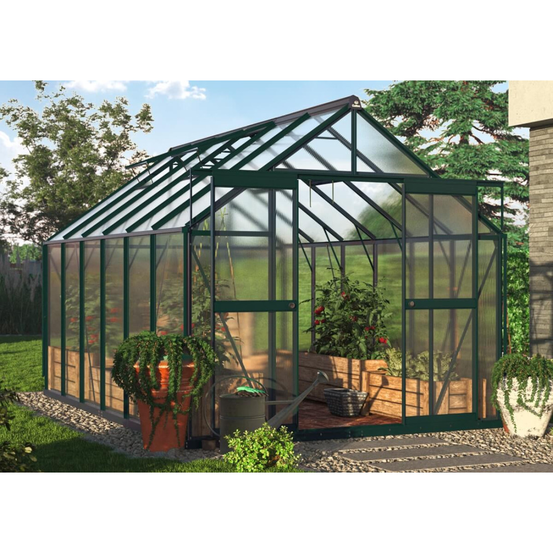 Szklarnia ogrodowa Slide-In DARK marki Cultivo o wymiarach 244x370 cm oferuje solidną konstrukcję wykonaną z aluminium i ocynkowanej stali, która gwarantuje trwałość i odporność na niekorzystne warunki atmosferyczne. Panele poliwęglanowe o grubości 4 mm z ochroną UV zapewniają idealne warunki do uprawy roślin. Innowacyjny system montażu Slide-In ułatwia instalację i zapewnia stabilność konstrukcji, a przesuwne drzwi i okna wentylacyjne wspierają odpowiednią cyrkulację powietrza.
