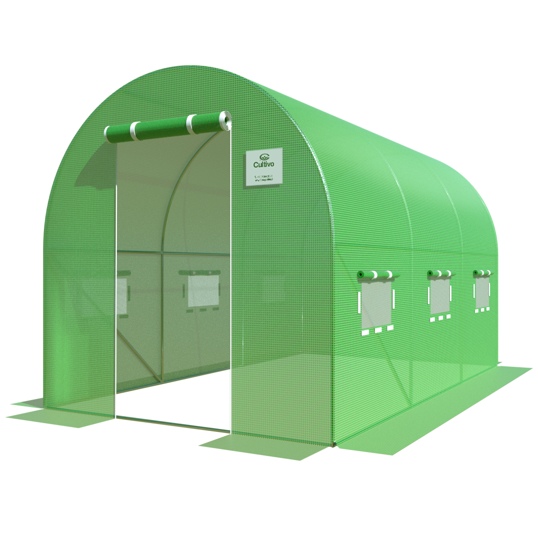 Tunel foliowy Cultivo o długości 3,5 m to rozwiązanie oparte na solidnej konstrukcji z ocynkowanych stalowych profili, które zapewniają trwałość i odporność na warunki atmosferyczne. Wyposażony w przezroczystą folię PE z filtrem UV4 wzmacnianą siatką PP, tunel ten chroni uprawy przed promieniowaniem słonecznym i uszkodzeniami. Wewnątrz znajduje się 6 okien wentylacyjnych z moskitierami, szerokie rolowane drzwi z zamkami oraz praktyczne zatrzaski.