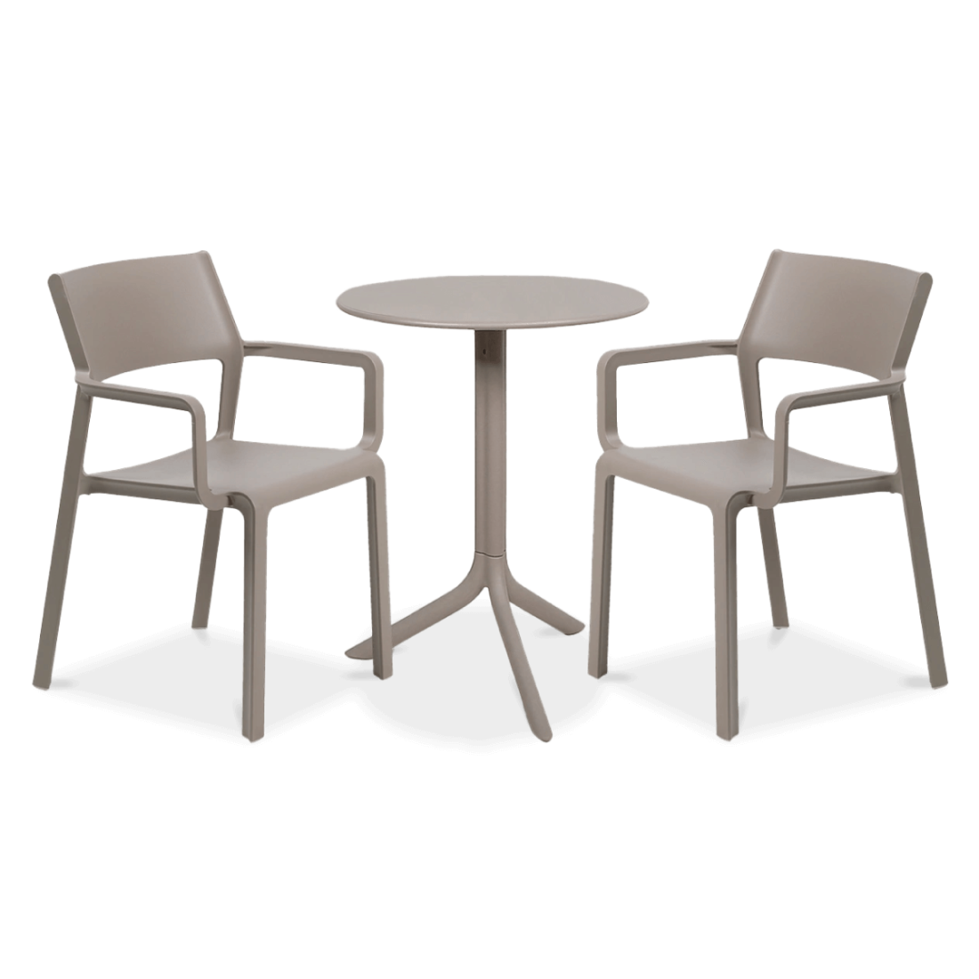 Zestaw mebli Nardi TRILL/SPRITZ 2+1 to funkcjonalne rozwiązanie przeznaczone dla przestrzeni komercyjnych. Włoskie wzornictwo łączy się tu z wysoką jakością wykonania. Komplet składa się z dwóch krzeseł oraz stolika, które można ustawić w dwóch wysokościach: jadalnej i kawowej.