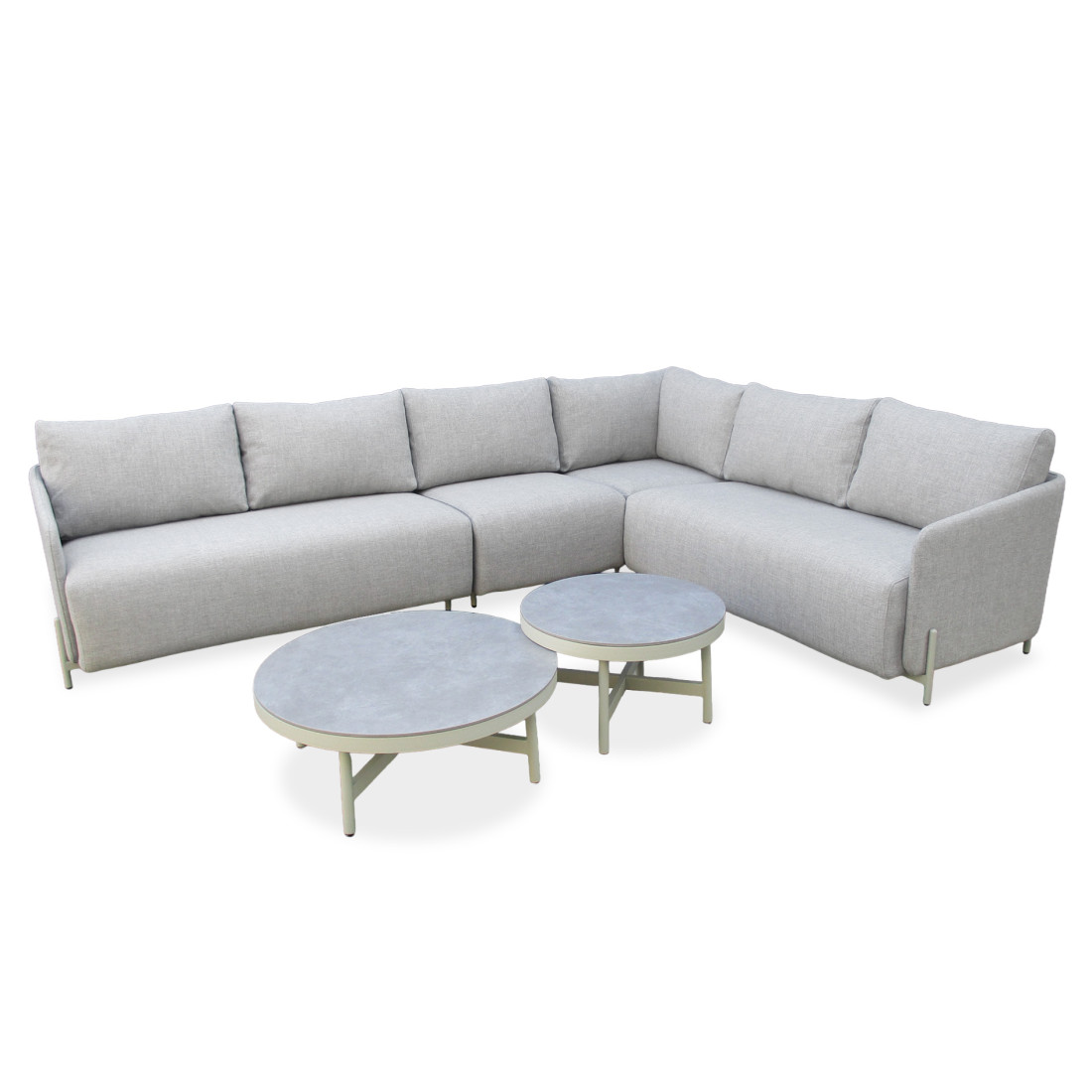 Narożnik ogrodowy AURA CAFFE Grey to zaawansowane rozwiązanie dla segmentu wyposażenia zewnętrznego. Produkt łączy nowoczesny design z funkcjonalnością, bazując na solidnej, aluminiowej konstrukcji, pokrytej powłoką proszkową, co zapewnia odporność na korozję. Elementy zestawu, takie jak blaty wykonane ze spieku kamiennego o grubości 6 mm, wykazują wysoką odporność na zarysowania i ekstremalne temperatury. Siedziska o imponującej grubości 32 cm są wyposażone w piankę szybkoschnącą, co zwiększa wygodę użytkowania i minimalizuje czas potrzebny na wyschnięcie.