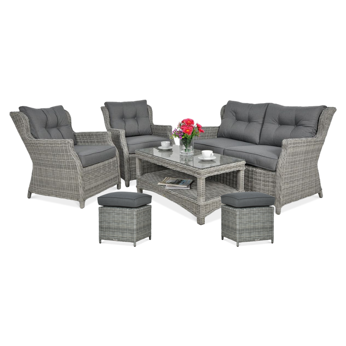 Zestaw Mebli z technorattanu TRIVENTO 2 + Pufy Stone Grey